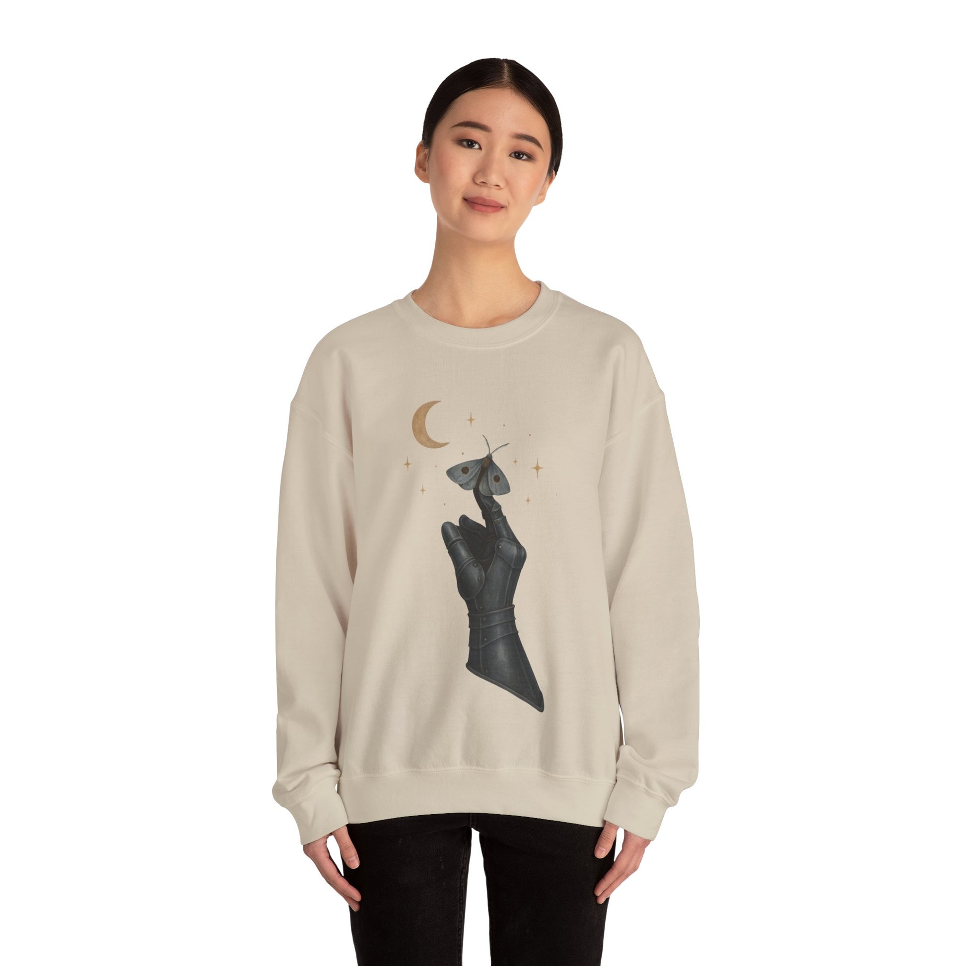 Elevate your wardrobe with this stylish Unisex Heavy Blend™ Crewneck Sweatshirt, perfect for any occasion. The unique design featuring an elegant hand holding a moth creates an aura of mystery and allure, making it a statement piece in your collection. Crafted for comfort with a classic fit, this sweatshirt pairs effortlessly with jeans or joggers, making it ideal for cozy outings or lounging at home. It's a fantastic gift for art lovers, dreamers, and those who appreciate unique fashion. Whether for casual gatherings, self-care days, or as a thoughtful present during the holidays, this sweatshirt embraces both style and comfort, perfect for expressing individual flair any time of year.
